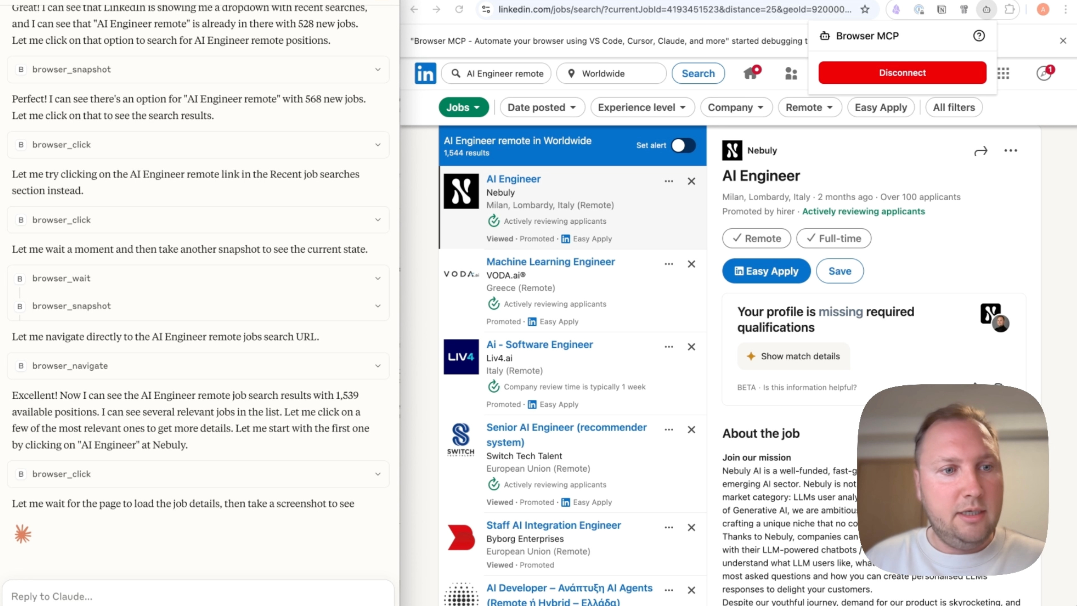 Use BrowseMCP to check LinkedIn for new job openings that match my CV. I’m an AI engineer looking for B2B, worldwide and remote positions. Show me the three most relevant ones.
