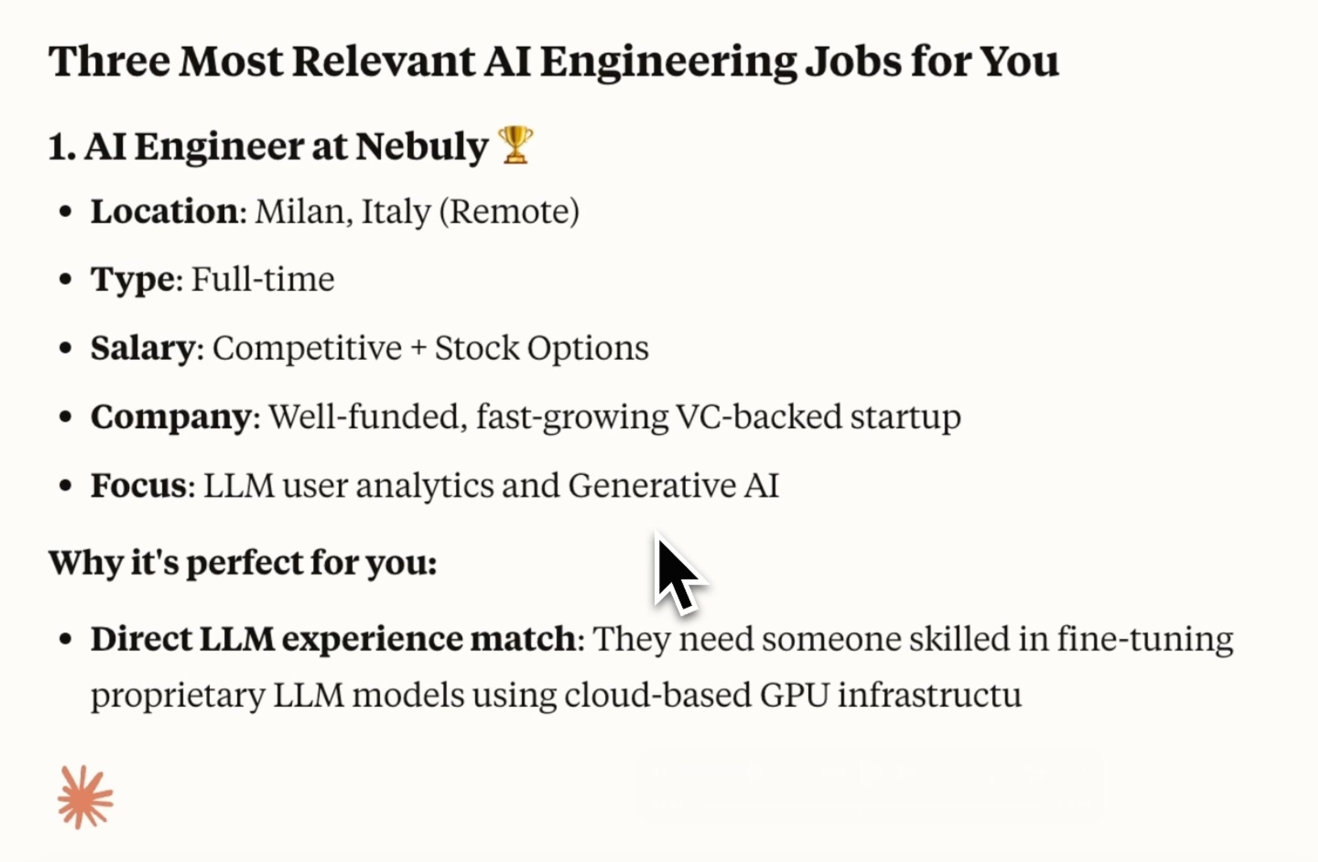 Claude offered me three relevant jobs. Nice! I’ll look into the details and apply.