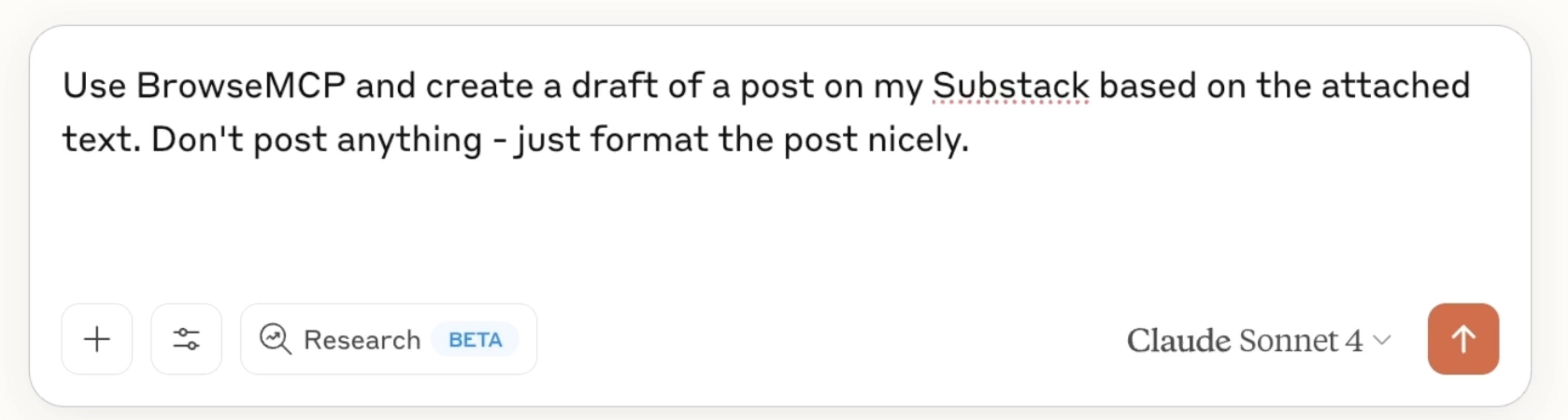 Use BrowseMCP and create a draft of a post on my Substack based on the attached text. Don't post anything; just format the post nicely.