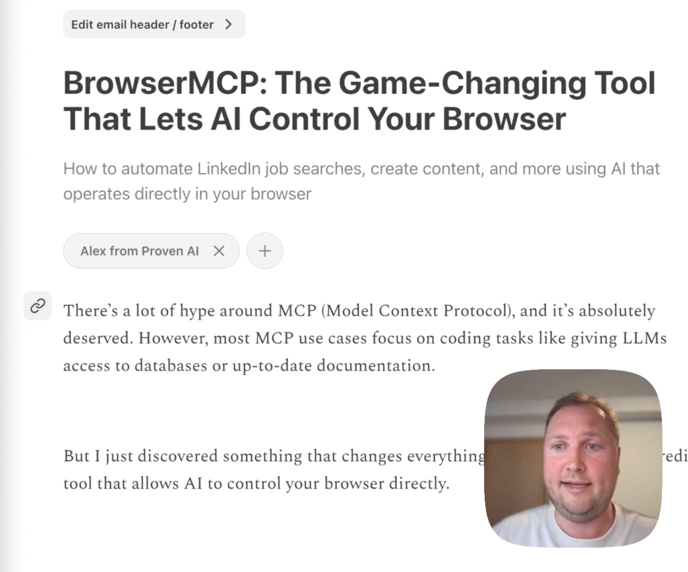 First, I’m going to give BrowserMCP access to this browser tab.